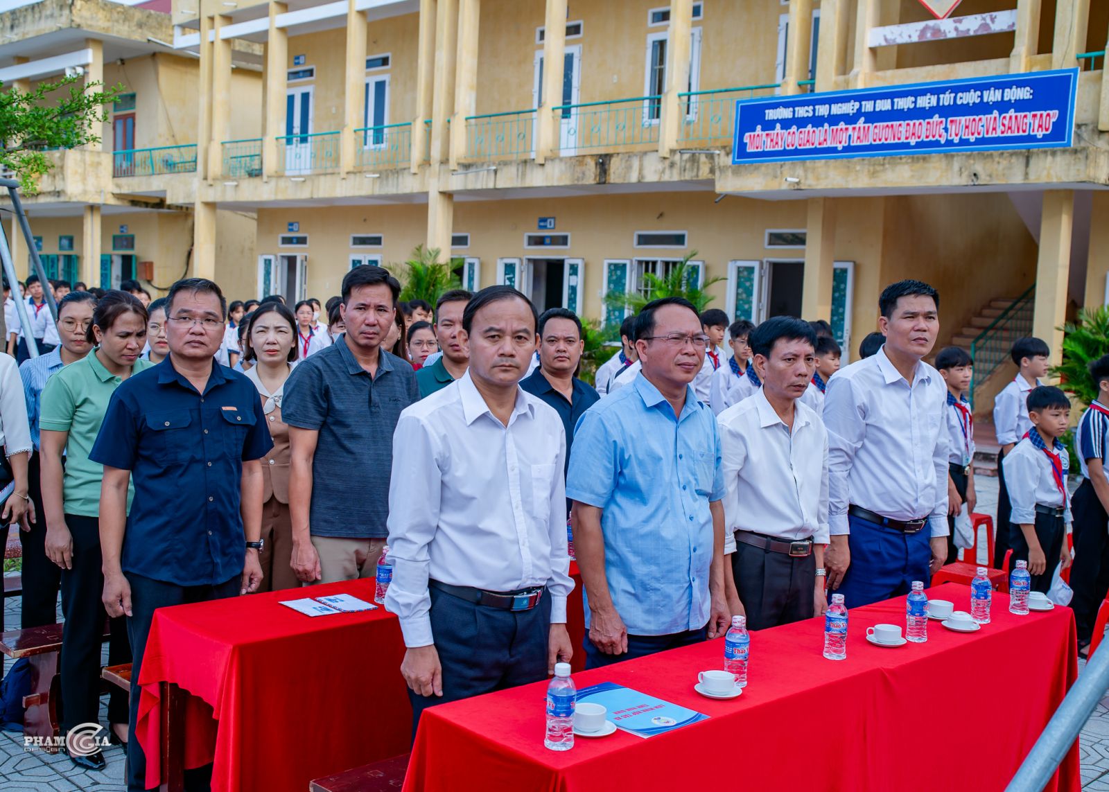 Về phía nhà trường có: thầy giáo Khổng Thanh Tùng – Bí thư chi bộ, Hiệu trưởng nhà trường cùng các thầy cô giáo trong BGH, cán bộ, giáo viên, nhân viên trong Hội đồng sư phạm và hơn 900 em học sinh của nhà trường.