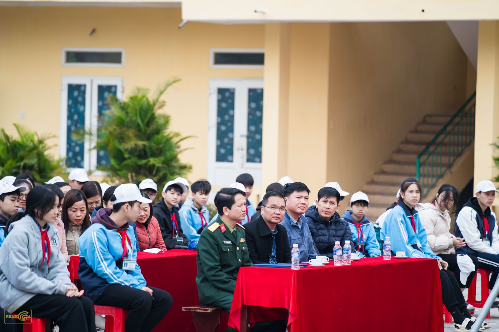 Về phía nhà trường có thầy giáo Khổng Thanh Tùng – Bí thư Chi bộ, Hiệu trưởng nhà trường cùng các thầy cô giáo trong Ban giám hiệu, Hội đồng sư phạm và hơn 900 em học sinh của nhà trường.