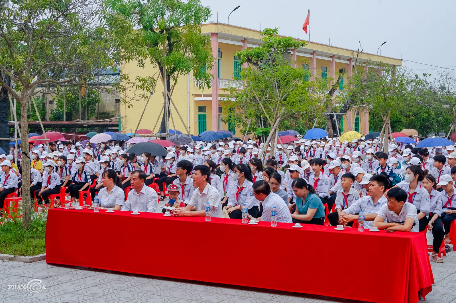 Tham dự buổi lễ có quý vị đại biểu trong Ban thường trực Hội cha mẹ HS nhà trường; Cô giáo Trịnh Thị Thùy – Đảng ủy viên, Bí thư chi bộ, Hiệu trưởng nhà trường cùng toàn thể các thầy cô giáo, cán bộ, nhân viên trong Hội đồng sư phạm nhà trường và 831 em HS của nhà trường.